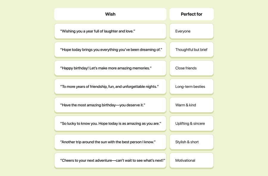 If you want to keep it short while still being meaningful, these birthday wishes are low-effort, high-impact.