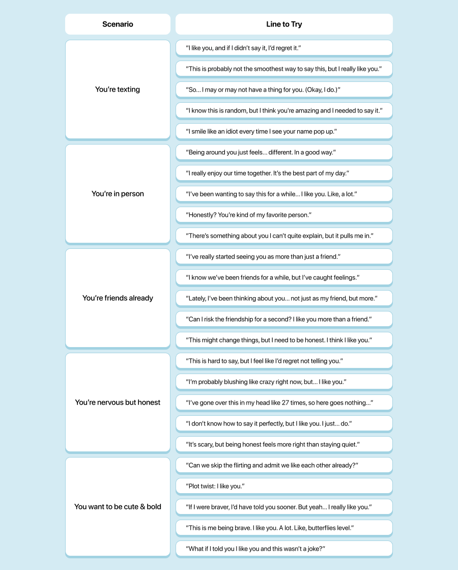 - “I don’t want to keep this to myself anymore. I really like you.”