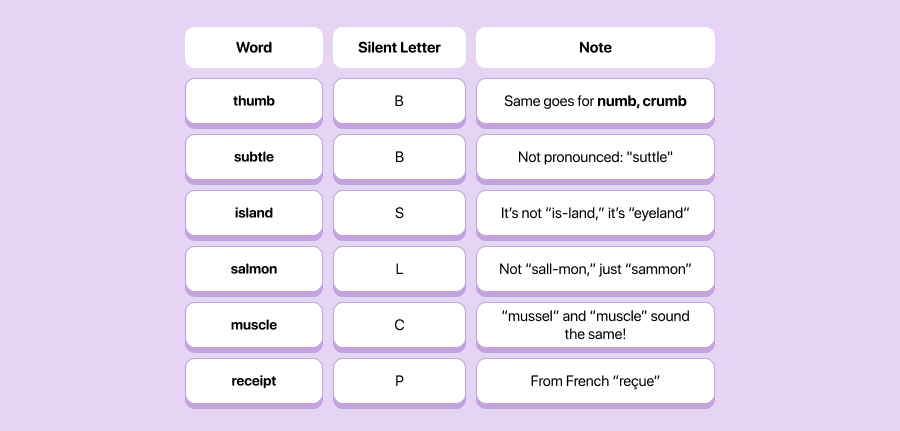 Silent letters might feel like a cruel joke when you’re trying to spell or pronounce a word right. But they’re also a beautiful reminder of how language evolves: full of stories, history, and quirks.