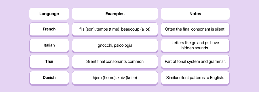 Silent letters are not exclusive to English. Here’s how they show up in other languages: