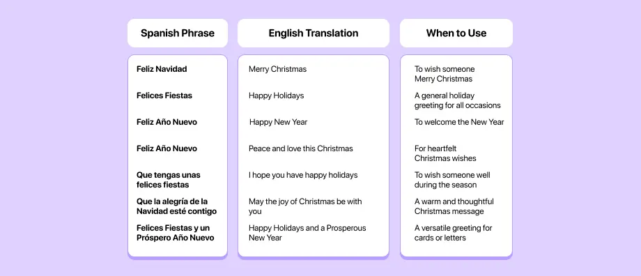 If you’ve ever heard the classic holiday tune “Feliz Navidad” by José Feliciano, you already know one of the most popular Spanish holiday greetings. What’s the meaning of "Feliz Navidad"? It simply translates to “Merry Christmas.” This phrase is universally recognized across Spanish-speaking countries and is perfect for formal and casual settings.
