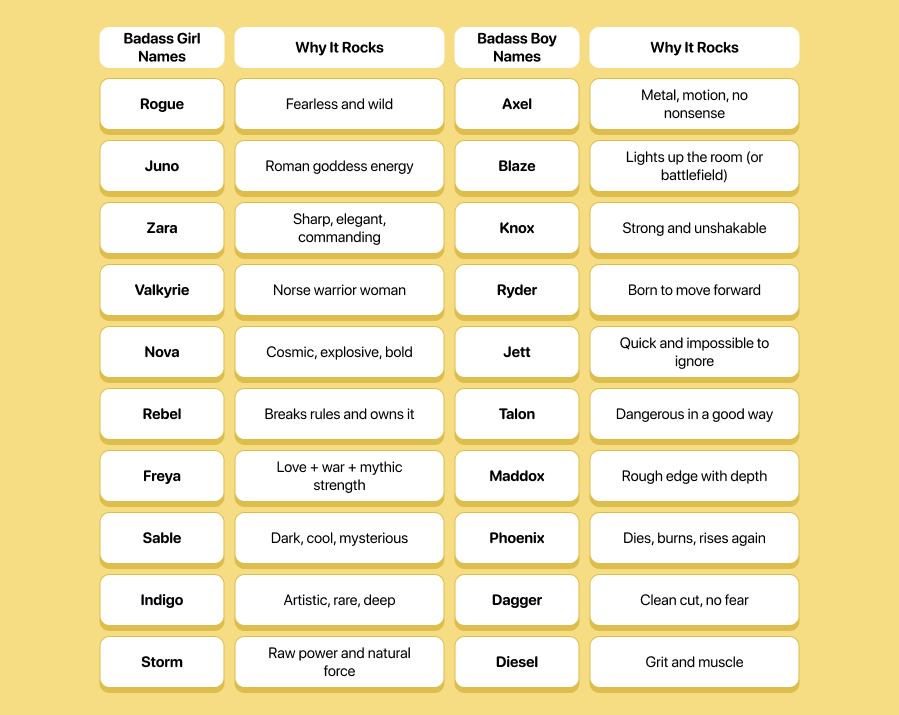 Names carry weight, and the right one can feel like a mission statement. If you’re naming a baby, creating a character, or just need something unforgettable, this bonus list of badass girl and boy names brings heat, grit, and a whole lot of edge.